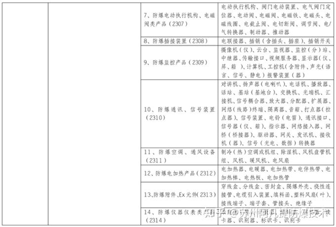 下表是防爆3c认证的产品目录,供大家参考。